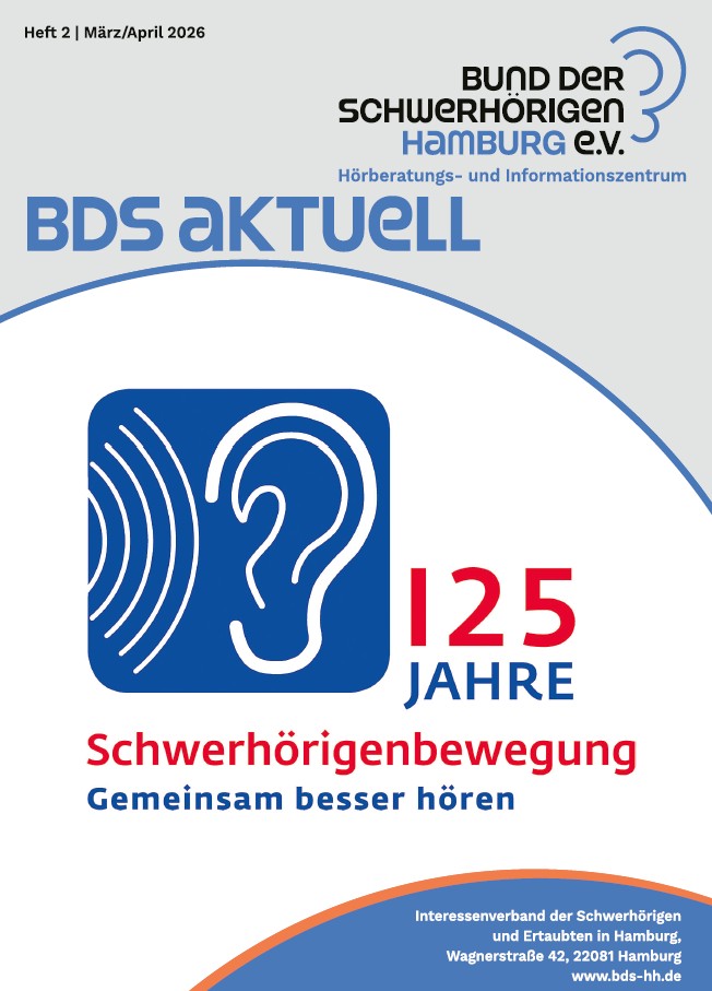 Alle zwei Monate erscheint die Vereinszeitschrift »BdS aktuell«. Die »BdS aktuell« umfasst verschiedene Themen, von aktuellen Nachrichten aus der Hamburger Schwerhörigen-Szene, aktuellen technischen, rechtlichen und sonstigen Informationen bis hin zu Berichten aus den Gruppen im Verein.
